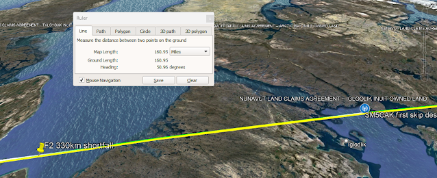 A final reminder from yesterday: the skip was only 160 miles short on a 5000 mile path, so that's actually really, really close, and for a diffracting radio wave, close enough.